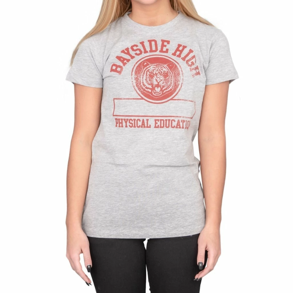 Can’t quite hack it on the Bayside High cheerleading squad? Guess you’d better order this officially licensed “Saved by the Bell” juniors tee and slum it with Screech in P.E.! The gray cotton tee features the Bayside High school logo and reads, “Bayside High Physical Education.”