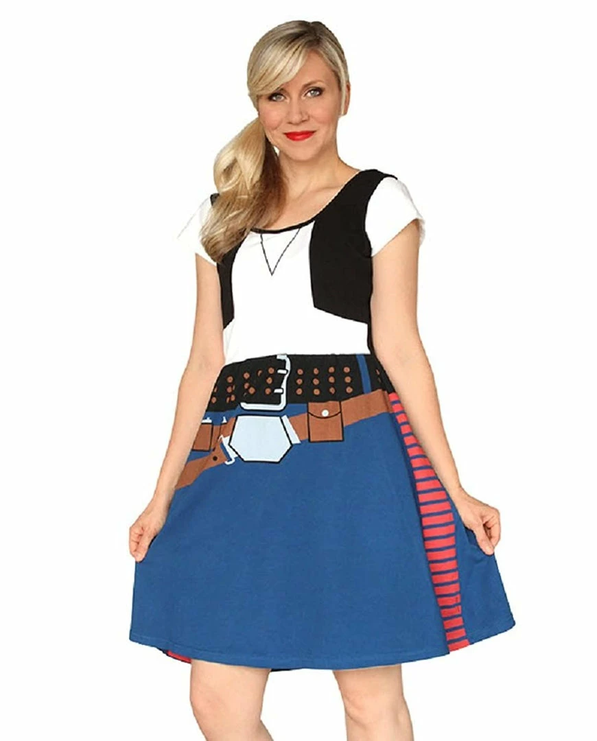 Have you ever wondered what it would be like to live the life of a smuggler for hire who travels around the galaxy in a spaceship that can make the Kessel run in less than twelve parsecs? If so, this officially licensed Star Wars costume is a great way to show off your inner rebel. Designed to look just like the outfit worn by Han Solo, this Star Wars dress is sure to please any fan of the franchise. Share your passion for the Lucasfilm universe with the help of this cute and fun Han Solo dress!