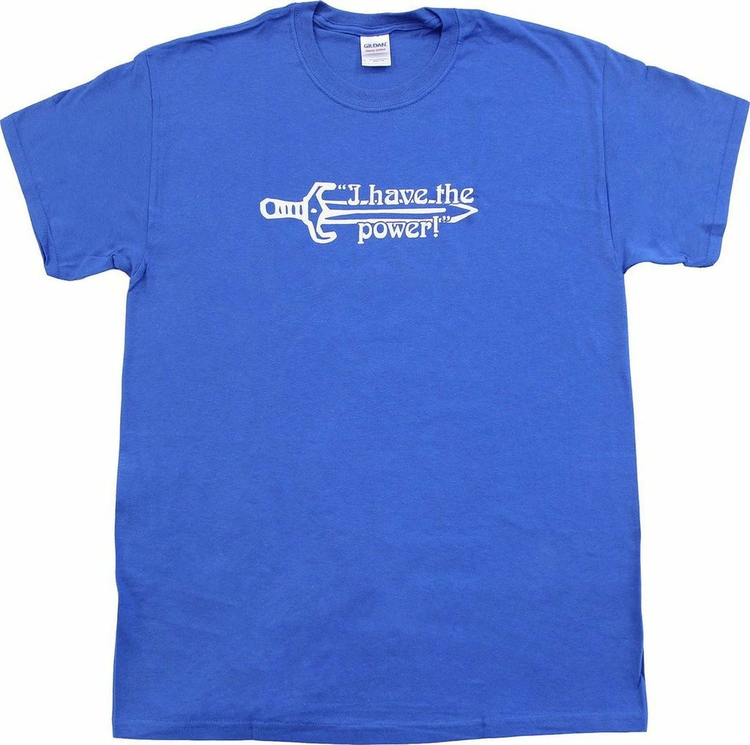 Let the world know you’re the most powerful man in the universe with this cool blue He-Man t-shirt! The 100% cotton tee features and image of the Power Sword alongside He-Man’s famous war-cry, “I have the power!”