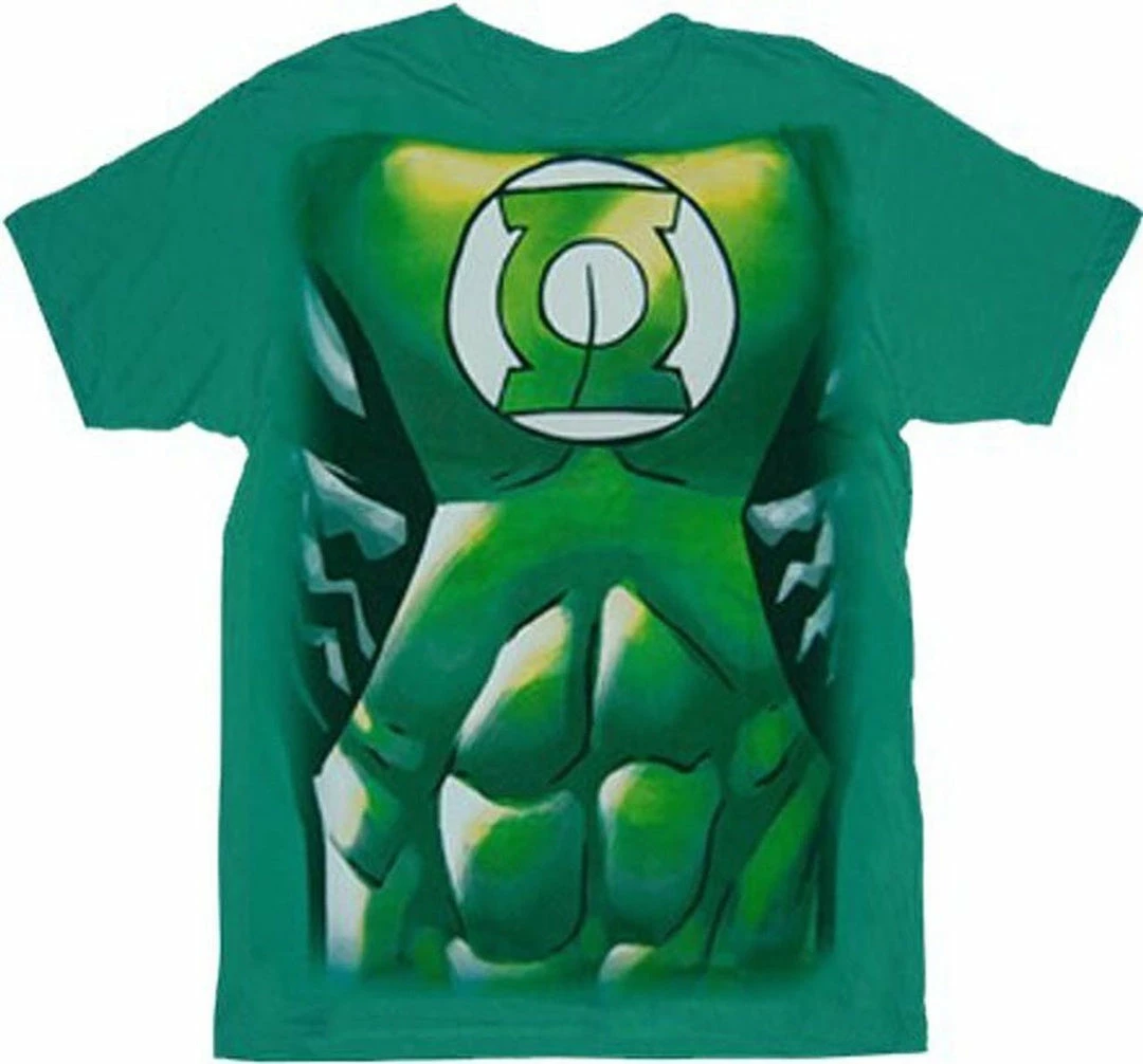 Wish you had sick abs like Ryan Reynolds? This officially licensed Green Lantern t-shirt will help you fake it ’til you make it! The green cotton tee features a Silver Age comic-art print of Hal Jordan’s superheroic costume top and musculature. Summon the willpower to order yours now!