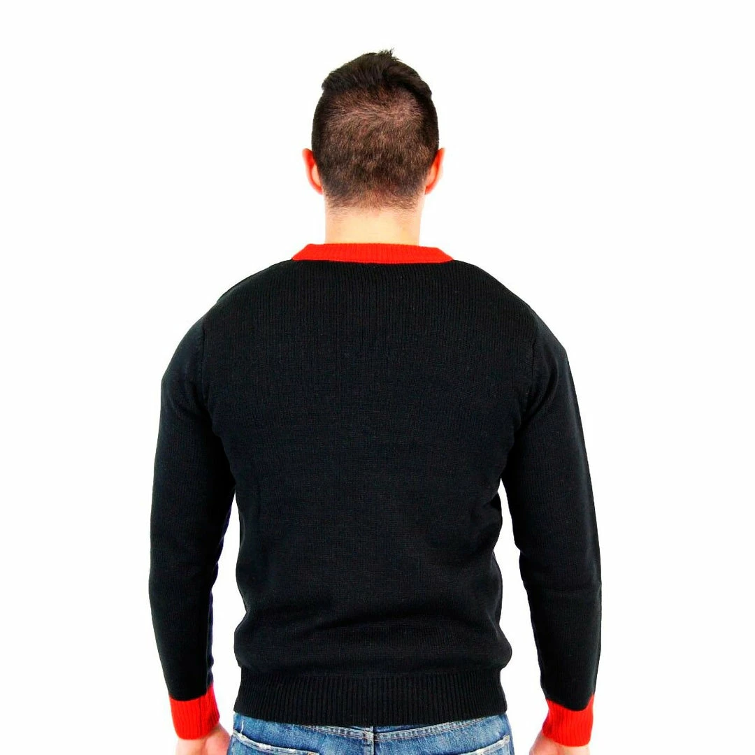 If you do a lot of decorating for the holidays, youβre probably pretty familiar with these colorful ball ornaments. After a long day of putting up decorations, sometimes you just want to have some fun and play with your Christmas balls! If youβve ever had fun with Christmas ornaments before, this hilarious holiday sweater is a great way to spread some cheer during the season. With a black background and few additional frills, this festive sweater would also be an excellent option for any ugly Christmas sweater contest or party!
