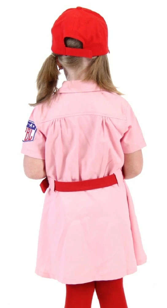 - Includes AAGPBL Baseball Dress, Baseball Cap, and Red Belt
