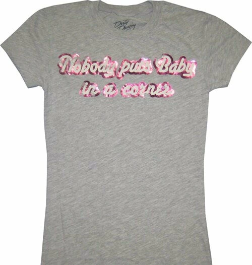 If there’s one line of dialogue that everyone remembers from 1987’s Dirty Dancing it’s Johnny Castle’s speech: “Nobody puts Baby in a corner…” Which is why we’ve crafted this officially-licensed Dirty Dancing Nobody Puts Baby in a Corner Juniors Distressed T-shirt. Our Dirty Dancing Baby in a corner tee is made of the highest quality materials and is made to last.