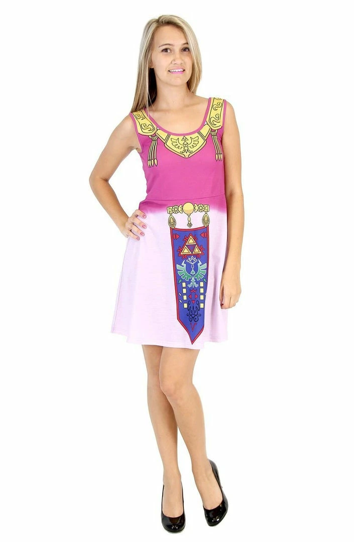 Are you looking for a costume that will show everyone how much you love The Legend of Zelda? If so, why not dress up as Zelda herself? This officially licensed Nintendo costume dress is designed to look just like the one worn by Princess Zelda in Ocarina of Time, making it an excellent choice for any die hard fan of the video game series. Show off your favorite Nintendo character in style with this great Princess Zelda costume dress. Party like a true gamer while dressed up in this awesome Legend of Zelda costume dress!