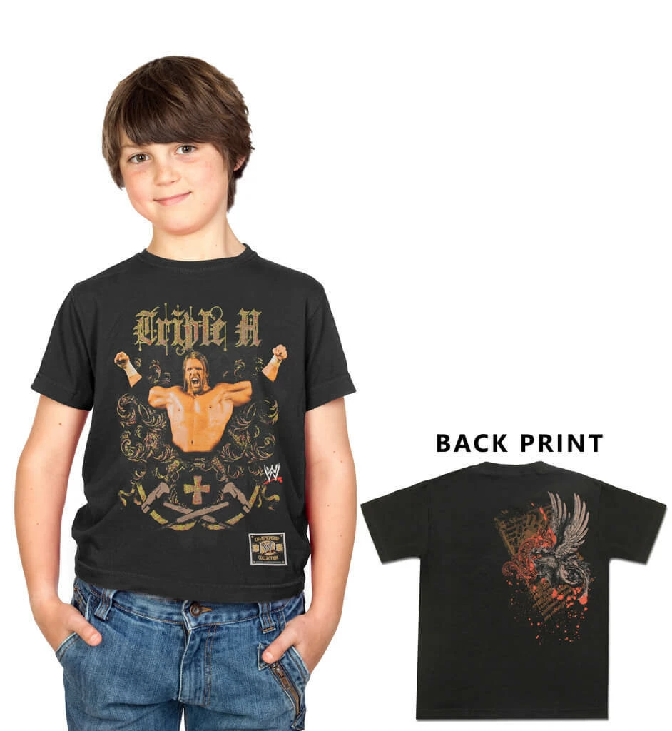 It’s easy to understand why Triple H was such a big figure in the wrestling world. You didn’t want to mess with him, certainly, and especially, not ever in the ring. We can understand just how much kids love Triple H as a wrestling hero. This is why we’ve crafted this totally fun, officially-licensed Triple H Fleur of the Gods Youth T-shirt for his youngest fans today.