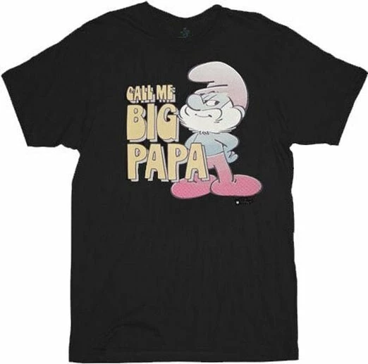 Throw a little respect into the mix for The Notorious B.I.G. When you wear this The Smurfs Papa Smurf βCall me Big Papaβ tee. Featuring Papa Smurf, the elder of The Smurf tribe, in a stoic pose, this Smurfs t-shirt is officially-licensed and will promise to give your friends a good laugh when they see you wearing it around town or to your next comic con.
