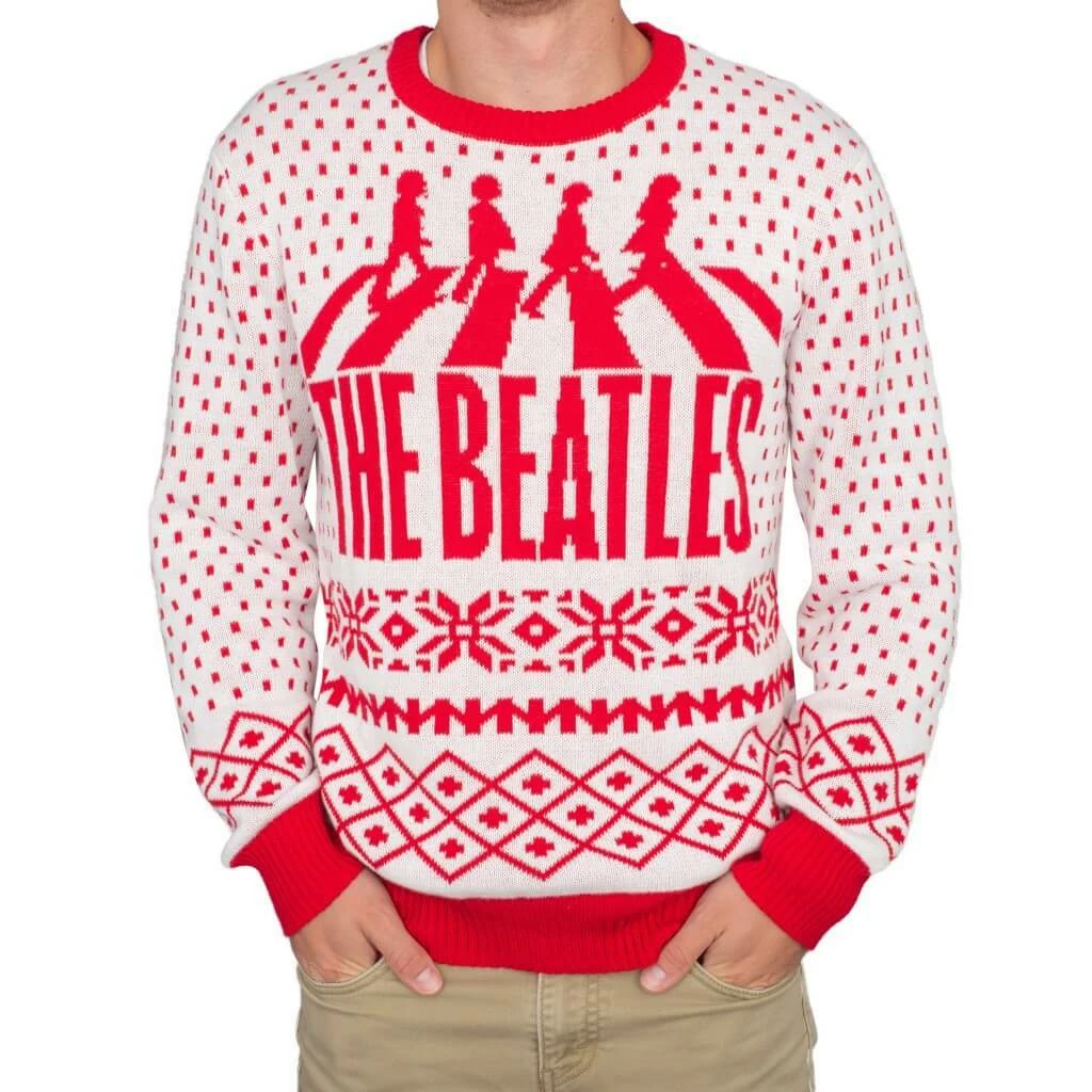 Officially Licensed The Beatles Abbey Road Red and White Ugly Christmas Sweater