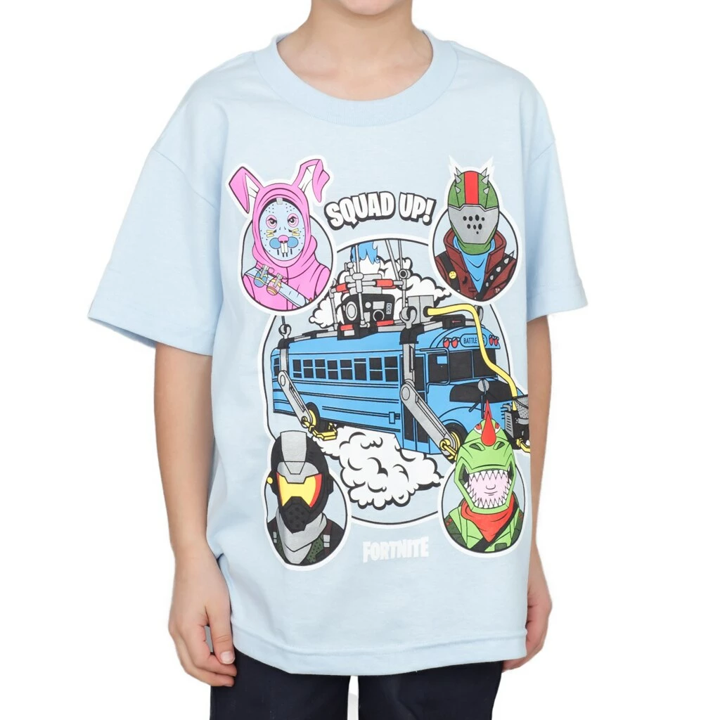 Kids that love the gaming world, love playing Fortnite will love this officially-licensed Fortnite Bus Crew Light Blue Youth T-shirt. A crazy Fortnite t-shirt, this Fortnite Bus Crew tee will make your little one the hit at school when they show up wearing this in class as the world of gaming knows no boundaries when it comes to dressing to impress by using images from the Fortnite gaming world itself. Fans of Fortnite that are obsessed with the video game will want to wear this Fortnite tee out on the town when they are hanging out with friends or when they’re at home, sitting and playing in the Fortnite world.
