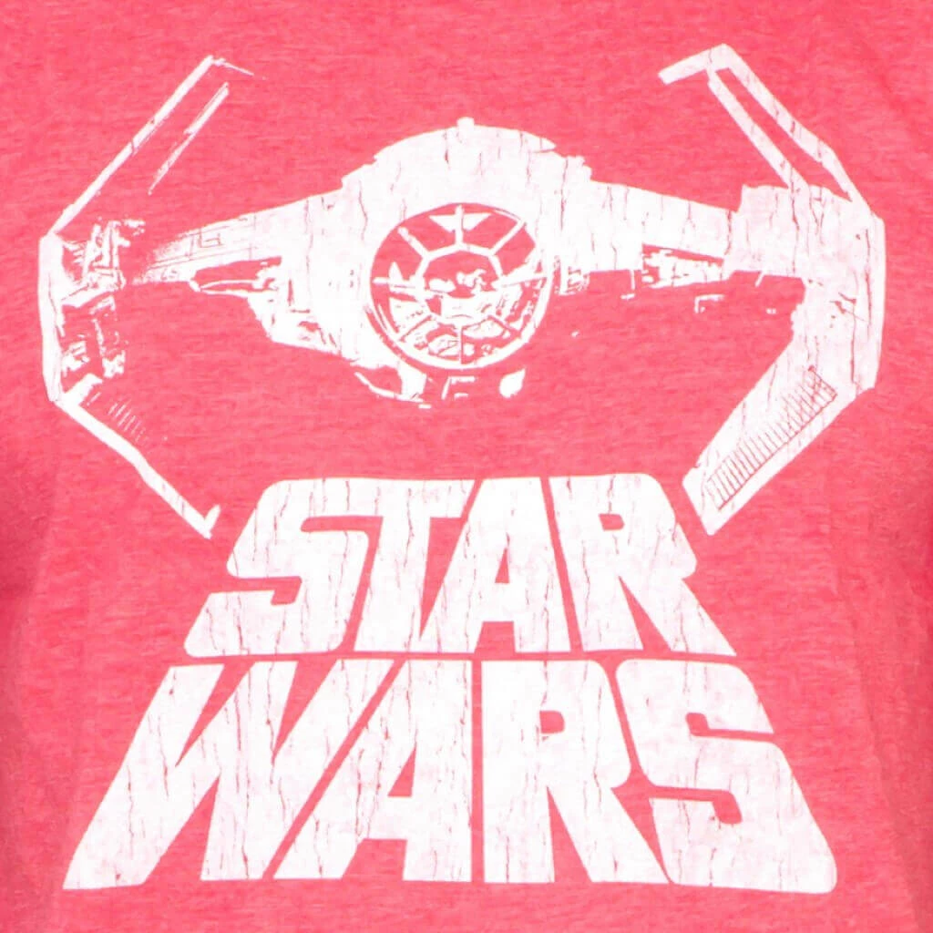 Are you looking for a retro t-shirt to show off your inner geek? If so, look no further than this awesome distressed tie fighter t-shirt! Featuring the advanced tie fighter used by Darth Vader in A New Hope, this officially licensed Star Wars t-shirt is perfect for any die hard fan of the science fiction series. With the original logo featured beneath the starship, this nostalgic Darth Vader t-shirt is sure to please almost any Star Wars aficionado!