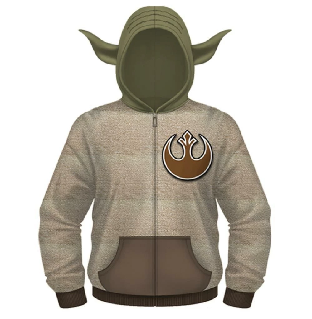 Have you ever wondered what it would be like to be a Jedi master? If so, this officially licensed Star Wars hoodie will definitely help you to look the part. Featuring two green, pointy ears, this Jedi hoodie will have you looking just like Yoda, one of the most beloved Jedi Warriors of all time. Let the world know that you know how to use the force for good with this awesome Yoda hoodie! Featuring the insignia of the Republic, this Yoda costume hoodie is perfect for any long time fan of the Star Wars franchise.