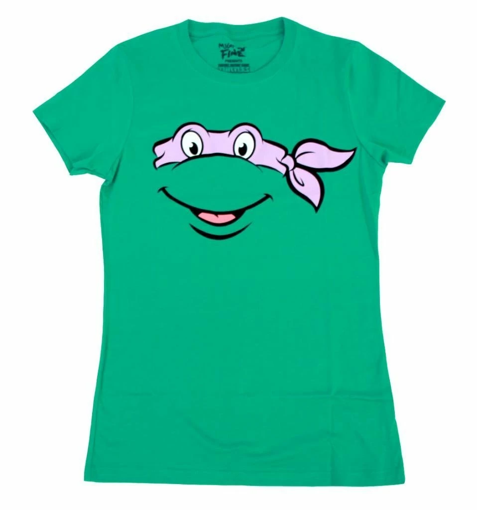 Leonardo leads, Donatello does machines. Raphael is cool but rude, and Michelangelo is a party dude! Show the world which Turtle you are with these officially licensed Teenage Mutant Ninja Turtles juniors tees. The Turtles’ faces are printed using a metallic foil in the style of the classic cartoon series. Choose red Raph, purple Don, orange Mike, or blue Leo. Cowabunga!
