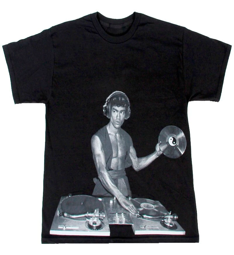 Have you ever seen the crazy moves that Bruce Lee was capable of? If you remember his unbelievably solid martial arts skills, then perhaps you can see how he would have made an excellent DJ! Featuring one of the biggest cinematic legends of all time, this officially licensed Bruce Lee t-shirt is perfect for anyone who loves his handy work. Whether you’re a fan of kung fu movies or good tunes, show it off in style with this silly DJ t-shirt!