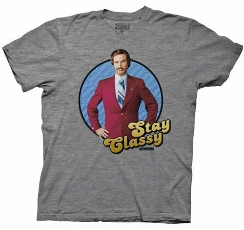 Ron Burgundy was always fond of reminding us to stay classy! If you’ve been staying classy since you first saw the hilarious movie Anchorman, why not show it off? This officially licensed Anchorman t-shirt features everyone’s favorite news anchor telling the world to keep being awesome. Let the world know that they should keep doing what they’re doing with this cool and funny Ron Burgundy t-shirt!