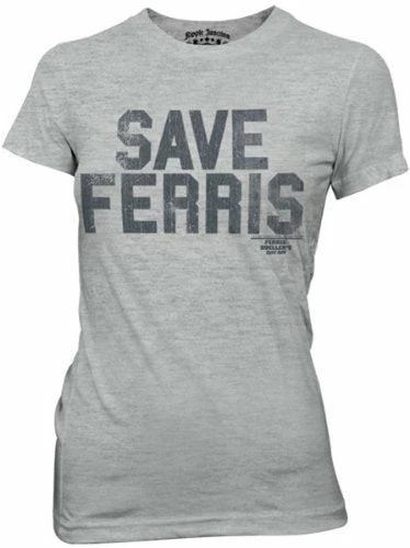 It’s the t-shirt so iconic it inspired a band name! This vintage-look “Ferris Bueller’s Day Off” juniors tee features the trendy slogan that took over Shermer High School: Save Ferris! The gray fitted t-shirt is distressed, giving it a beat-up, aged feel. Tell people you made it yourself as a child… it’s what Ferris would do!
