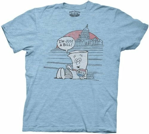 I’m just a bill. Yes, I’m only a bill. And I’m sitting here on Capitol Hill! All we need to know about the legislative process, we learned from “Schoolhouse Rock.” Show the do-nothings in Congress how it’s done with this retro-fabulous “I’m Just a Bill” t-shirt. It’s the perfect attire when you vote and for watching cartoons on election day!