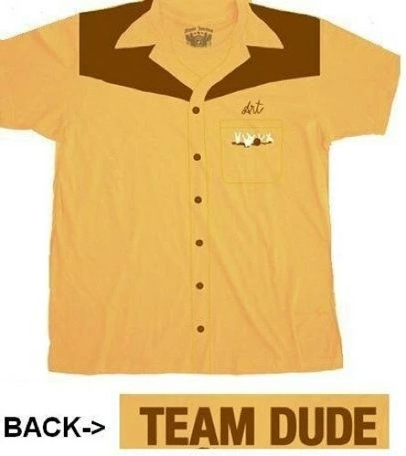 Dudes will abide wearing this amazing “Big Lebowski” t-shirt replicating the bowling shirt worn by Jeff Bridges in the movie’s final scenes. It’s perfect for Halloween or your town’s Lebowski Fest. Join “Team Dude” by ordering one now.