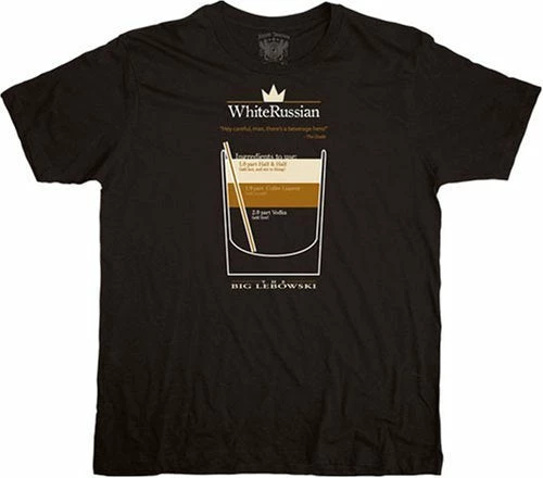 All out of Kahlua? No problem! Just slip on this officially licensed “Big Lebowski” t-shirt and head down to your favorite bowling alley. The bartender should have no trouble following the recipe to pour a White Russian, the preferred beverage of the Dude. Just don’t park in a handicapped zone.