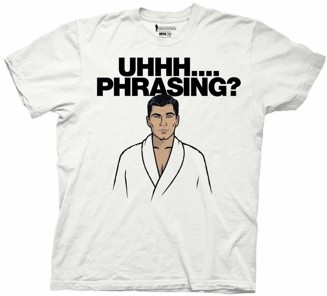 - This t-shirt shows Archer with the phrase “Uhhh… Phrasing”