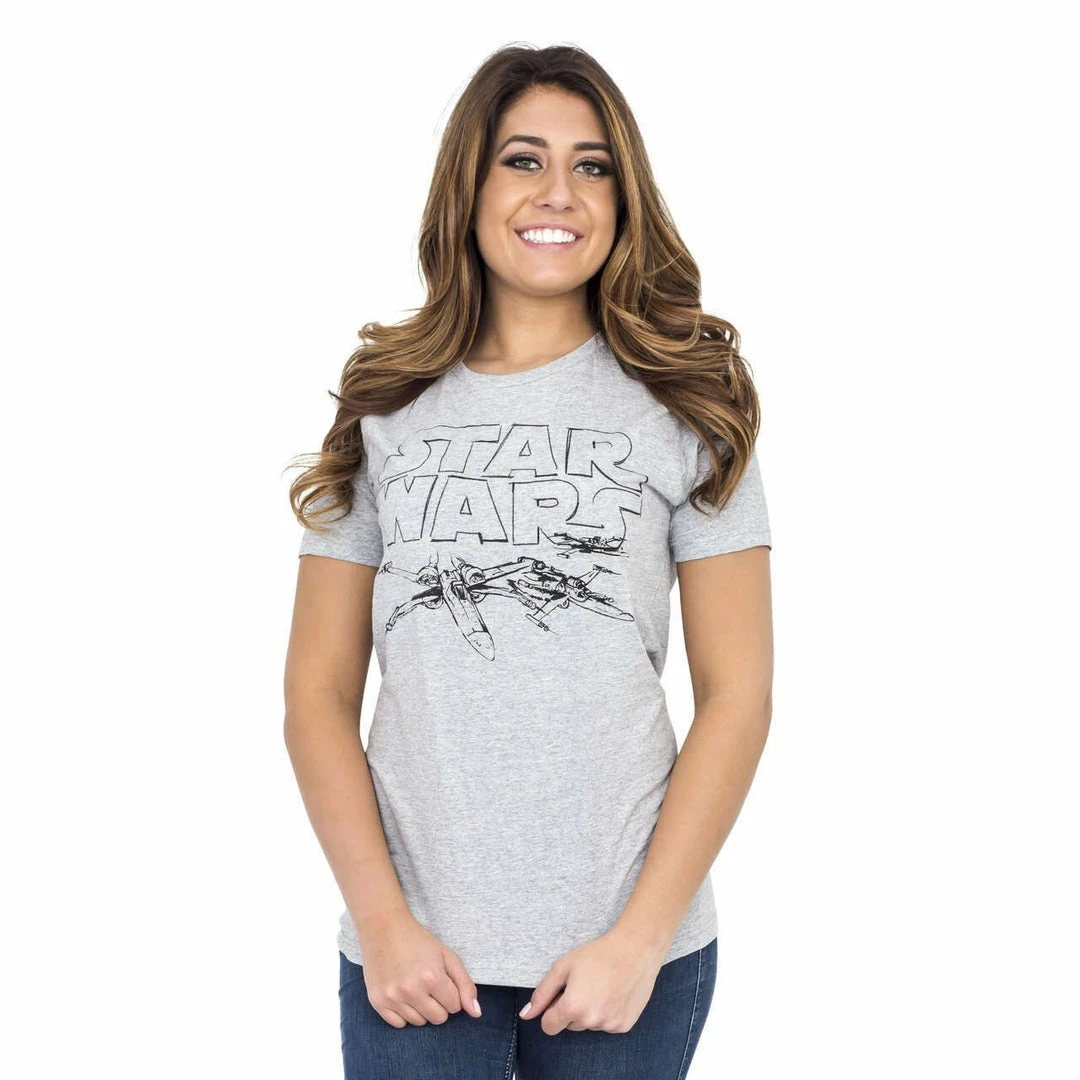 Go retro as a Star Wars fan when you wear this officially-licensed Star Wars logo X-Wing Fighter t-shirt. Featuring two X-Wing Fighters in motion with the classic Star Wars logo in support, this retro, simple, and fun Star Wars t-shirt is the perfect gift for anyone who loves Star Wars or 1980s pop culture. Show off to all your friends just how much you love Star Wars when you wear this fun Star Wars logo 1977 t-shirt.