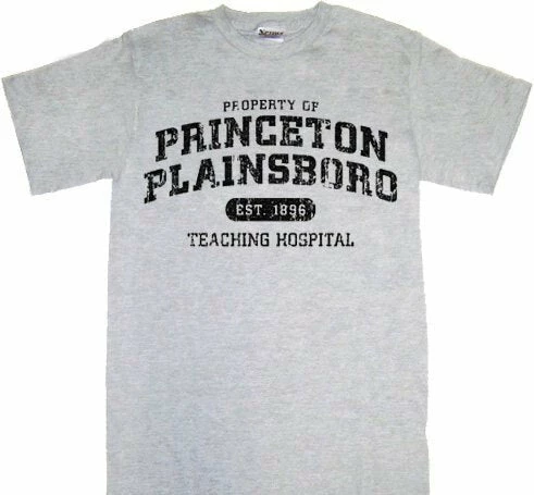 It’s the perfect attire for your physical rehabilitation! This officially licensed “House” t-shirt pays tribute to the brilliant curmudgeon’s workplace with the legend, “Property of Princeton Plainsboro, est. 1986, Teaching Hospital.” The print has been distressed for vintage appeal.