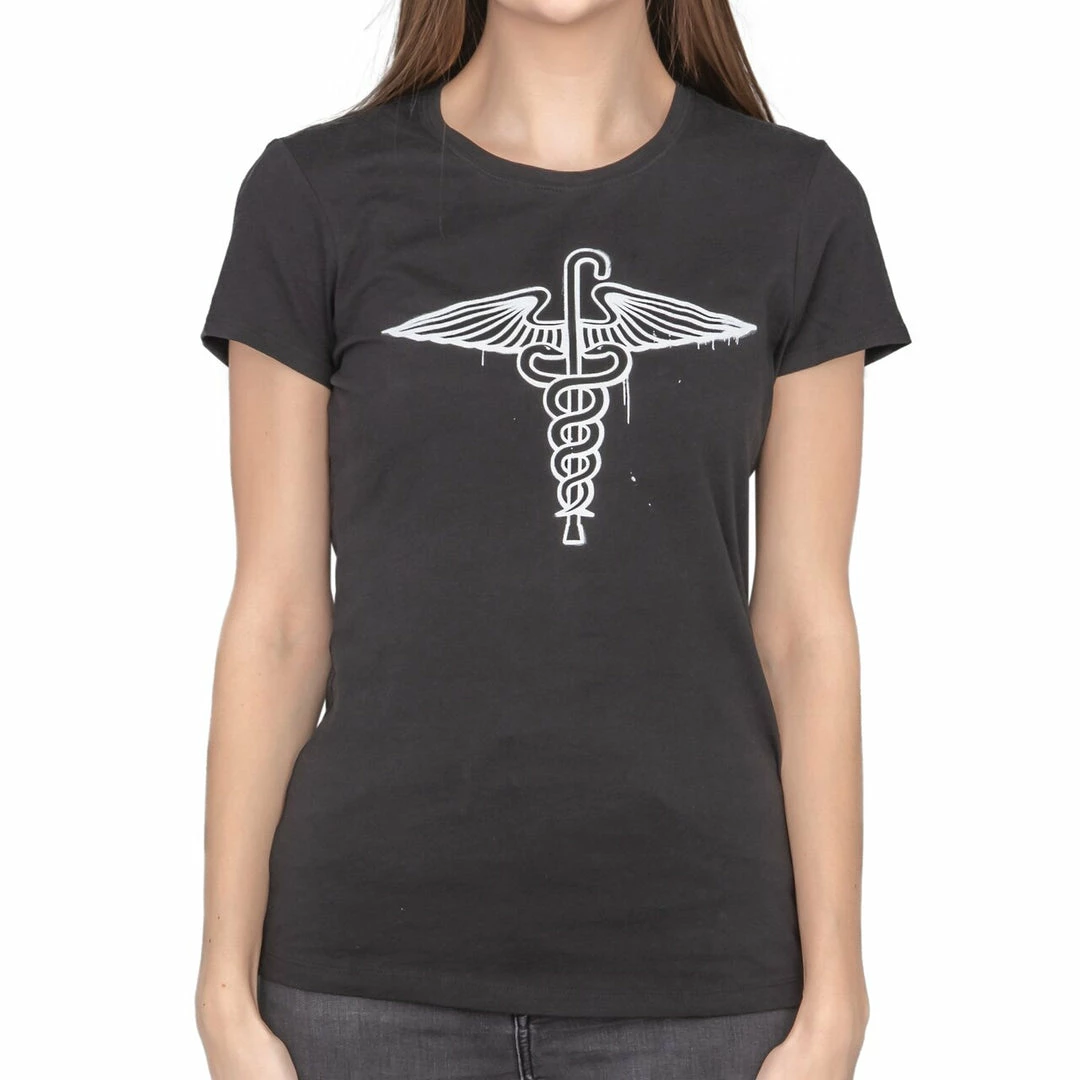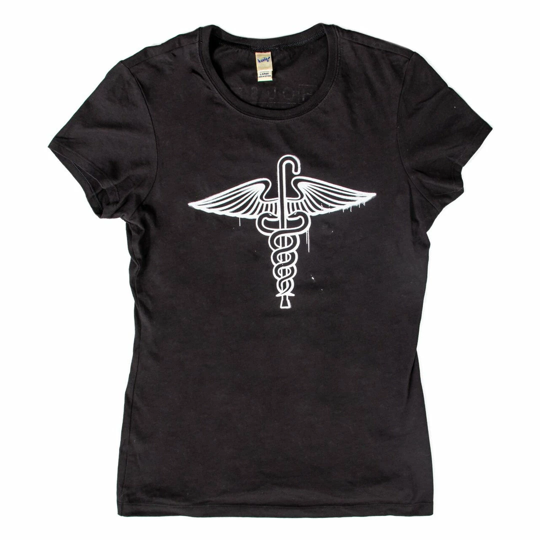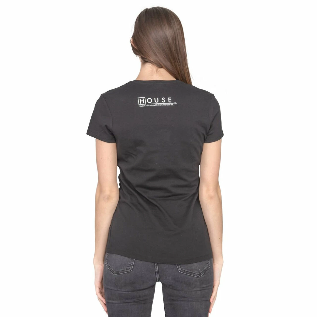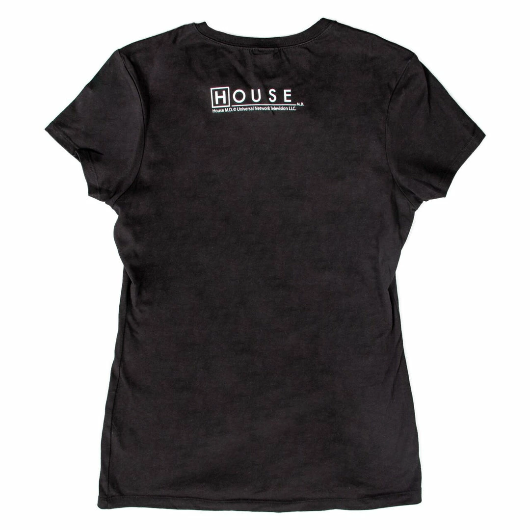Who’d have guessed this iconic design was all Hugh Laurie’s idea? This officially licensed “House” juniors tee features the “Snakes on a Cane” icon from the guerrilla marketing promotion for Season 6 of the hit Fox medical drama. The print on the front of the fitted t-shirt depicts a caduceus with House’s cane replacing the staff.