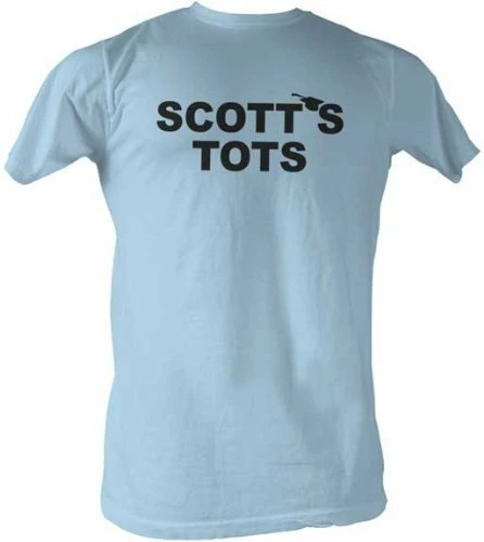 Wish you college tuition had been paid in full by a friendly local merchant? Sorry, but this officially licensed ?The Office? t-shirt is the best we can do! Pay tribute to one of Michael Scott?s wildest promises with this light blue cotton tee from the instant-classic Season 6 episode, ?Scott?s Tots.? Guaranteed to improve your chances of graduation!
