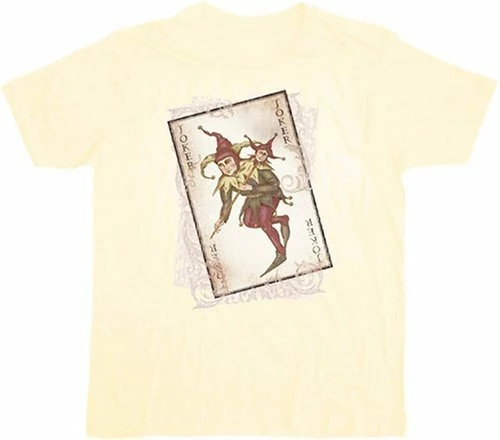 From the Dark Knight installment of Batman, this t-shirt features a vintage joker card.