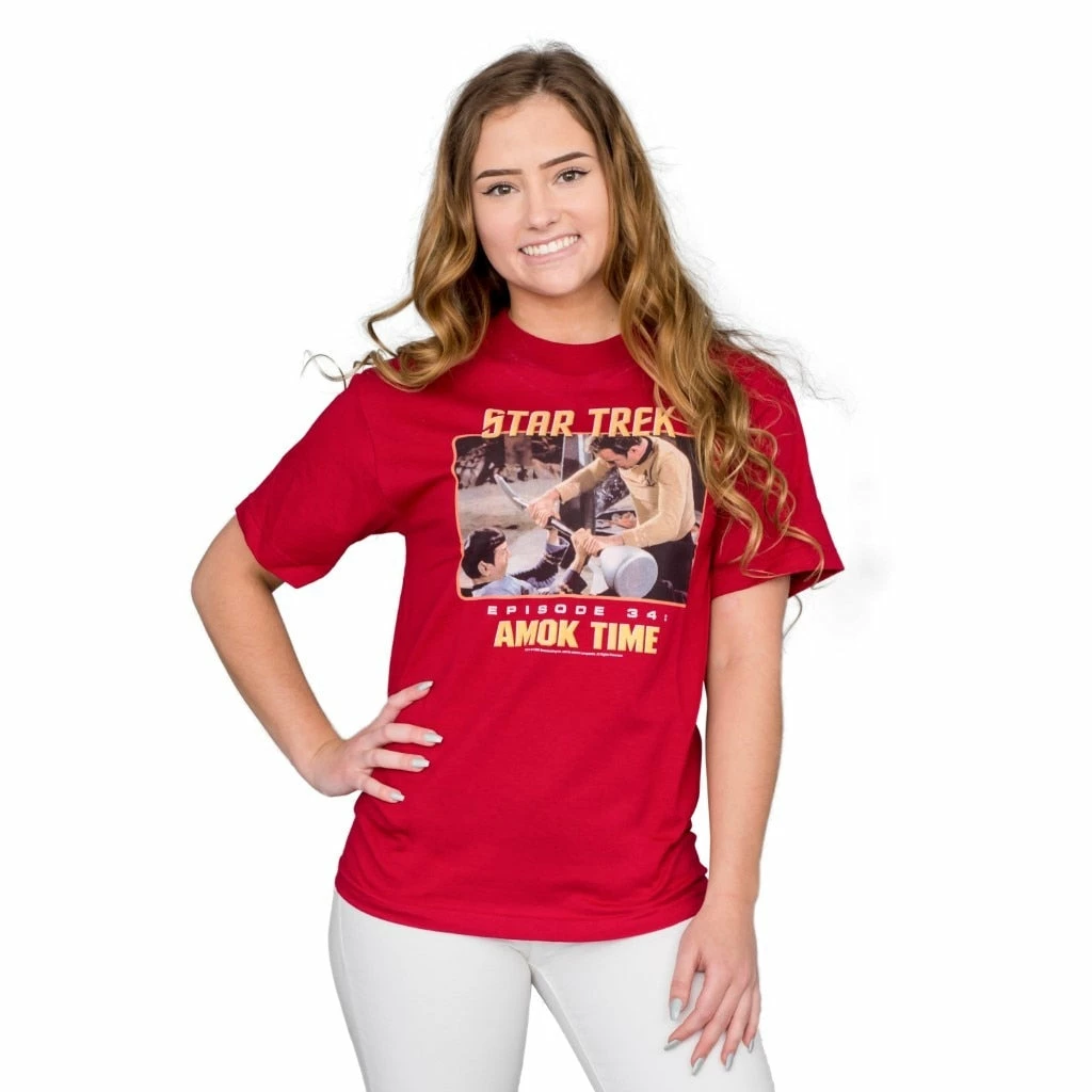 There are several special episodes of this science fiction classic, but few are as memorable as this one. If you’re a trekkie who’s looking for an interesting way to show your support, this officially licensed Star Trek t-shirt is perfect for you! Featuring an image taken from episode 34, this Amok Time t-shirt celebrates one of the more memorable episodes from the original series, making it a great choice for any die hard fan.