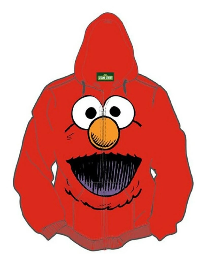 You’ve never looked so huggable as you will wearing this Elmo hoodie! This zip-up hooded sweatshirt features a huge image of Elmo’s smiling face.
