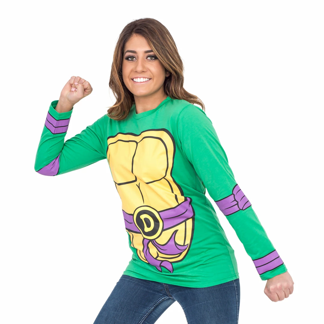 Cowabunga! Are you looking for a fun and interesting way to dress up as your favorite Ninja Turtle? If so, look no further than these officially licensed Teenage Mutant Ninja Turtles t-shirts! These long sleeve t-shirts include eye masks to complete the look, making them excellent Teenage Mutant Ninja Turtle costumes as well. Let the world know that you’re a Shellhead with one of these awesome TMNT t-shirts! Β This is the perfect Teenage Mutant Ninja Turtles Halloween costume.