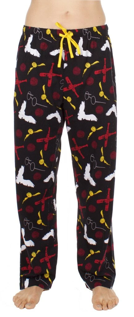 Have you ever wanted to play a game of Quidditch? Well, it would be pretty difficult to do unless you are a wizard, but that doesn’t mean that you can’t try! If you’re a fan of this fantasy sport, show it off with pride while watching your favorite magical movies in the comfort of these Quidditch lounge pants! Featuring a pattern of several items used in the game (along with Harry’s glasses), these officially licensed Harry Potter lounge pants are sure to please any fan of either the books or the films.