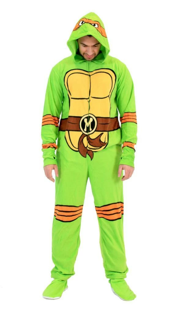 Are you looking for a totally radical way to show off your inner turtle? If so, these officially licensed Teenage Mutant Ninja Turtles pajamas will have you shouting Cowabunga! Designed to look just like Michelangelo, these TMNT pajamas will turn you into your favorite pizza eating, nunchuck wielding Ninja Turtle. Be prepared to take on any foe, foot clan or mutant, with the help of these awesome Michelangelo pajamas.
