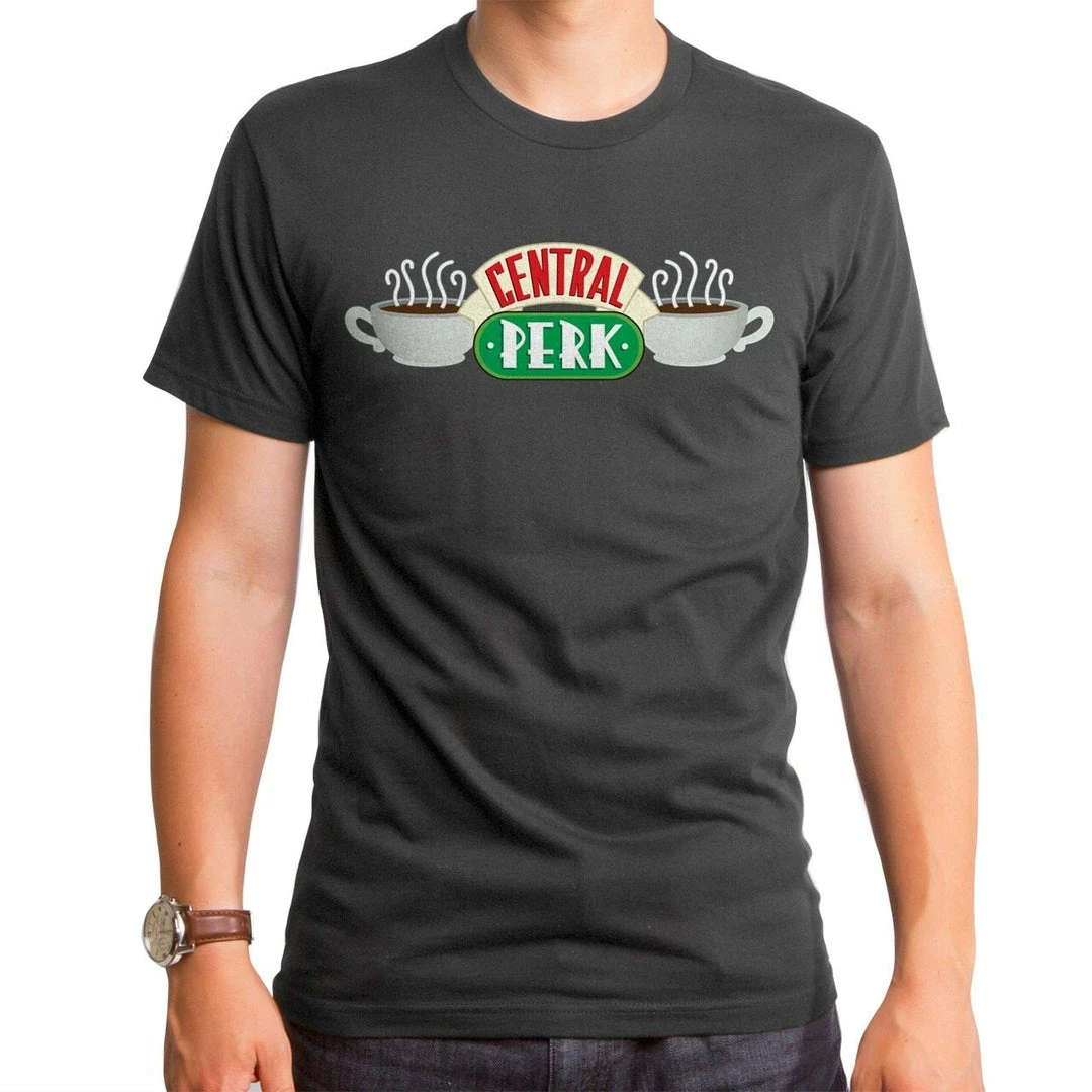 Celebrate the safest, coziest spot in Manhattan with this officially licensed “Friends” t-shirt! The blue cotton tee features the cheerful logo of Central Perk, the comfy coffee shop that was the preferred hangout for friends Ross, Rachel, Monica, Chandler, Joey, and Phoebe. Slip on this comfortable tee and grab a giant mug of coffee, and don’t be surprised if you find yourself humming “Smelly Cat.”