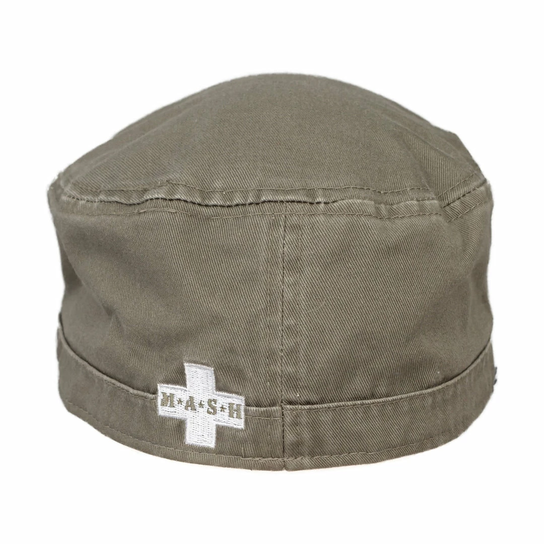 Shield your eyes from the brutal Korean sun with this officially licensed “MASH” military cadet cap! The fitted hat features the “MASH” TV show logo on the front, a cross logo on the back side, and a medical symbol on the bottom front.